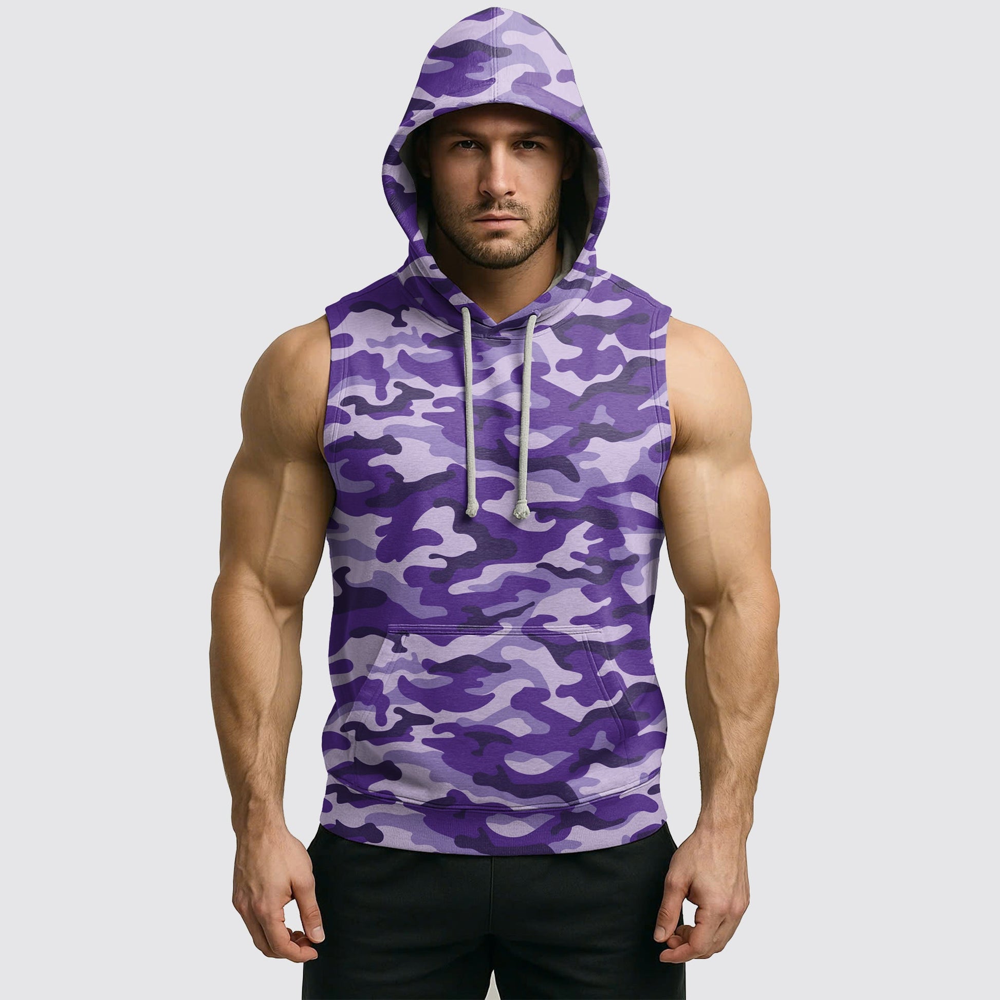 This Men's Camo Sleeveless Hoodie is made for movement—whether you're lifting heavy at the gym or hitting the streets in style. Featuring a bold camouflage print, sleeveless cut for full arm mobility, and a lightweight hood for that extra edge. Perfect for training, layering, or making a statement.