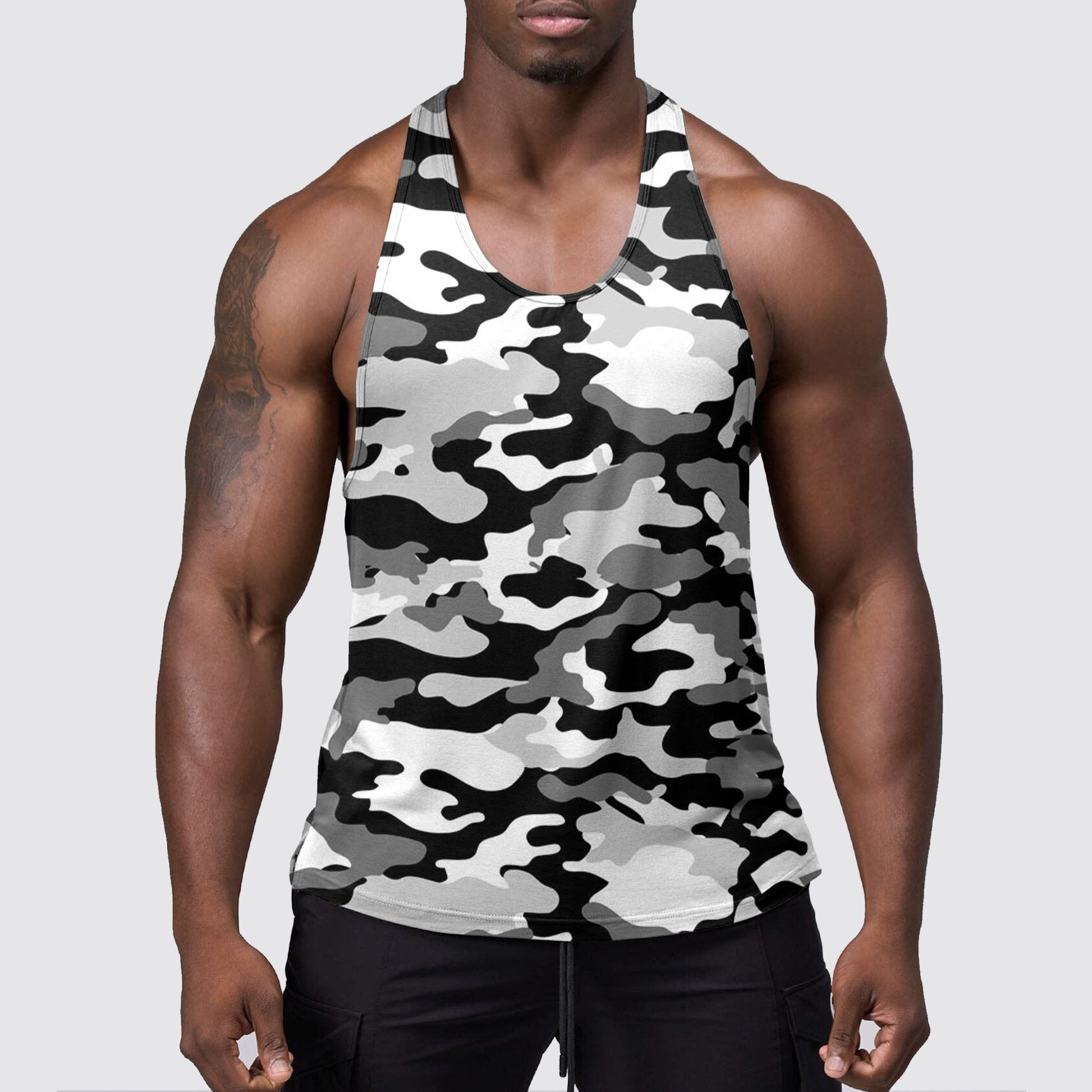 Dominate your workouts with the StealthFlex Camo Tank Top. Featuring a bold camo design, sweat-wicking fabric, and an athletic fit that highlights your physique, this tank offers unmatched comfort and durability for training or casual wear.